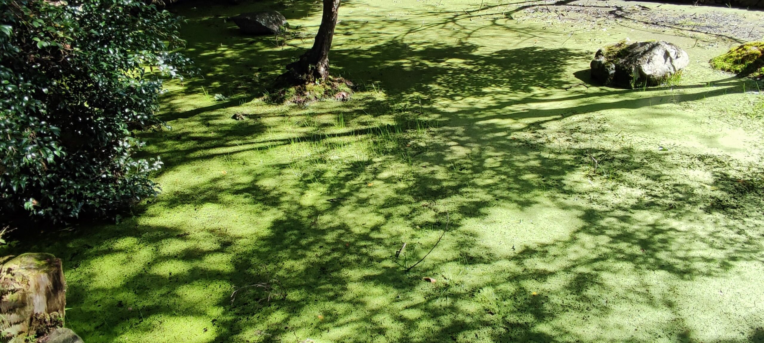 そしてそして、奥に佇む緑の池の上で、赤とんぼが奇妙なダンスをしている~。
